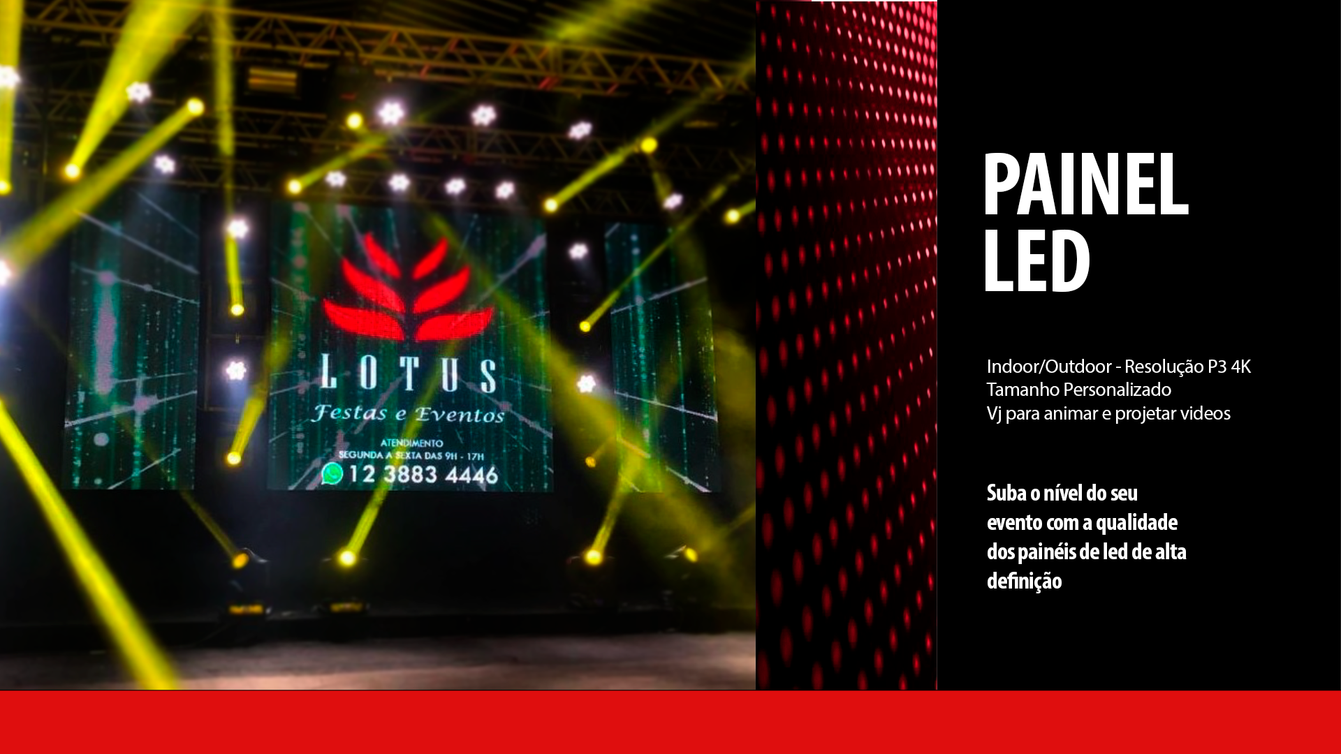 Empresa Lótus Festas e Eventos, fundada por Denys, atua no mercado desde 2011 oferecendo equipamentos para locação como coberturas e estruturas box truss, palcos, geradores, além de serviços como sonorização, iluminação para DJ e Bandas.